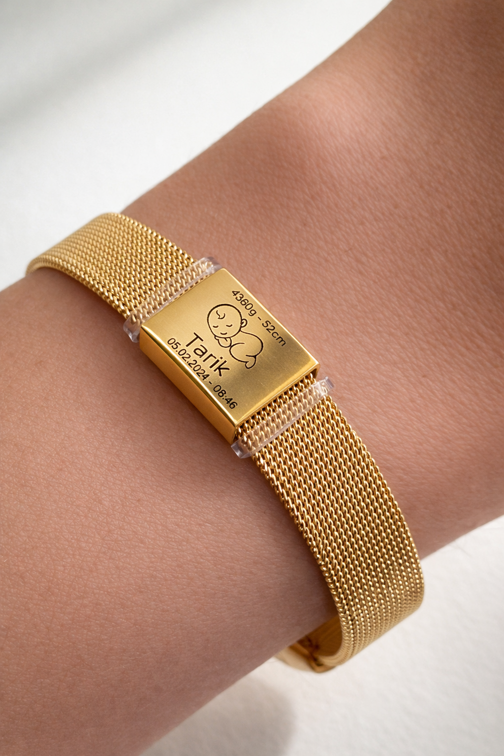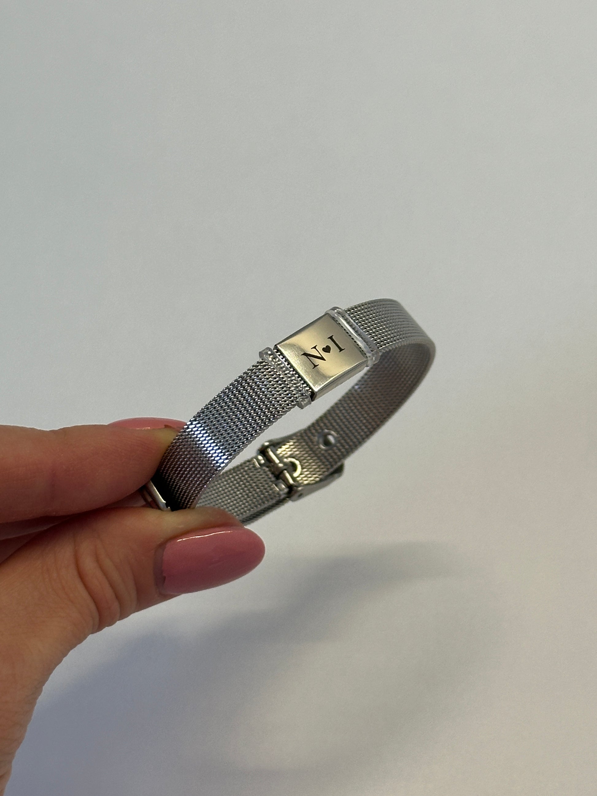 Ova moderna narukvica dolazi u dvije varijante – zlatnoj i srebrnoj boji – i savršen je poklon za posebne trenutke. Na pločicu se može gravirati ime, datum, posebna poruka ili simbol po vašoj želji.