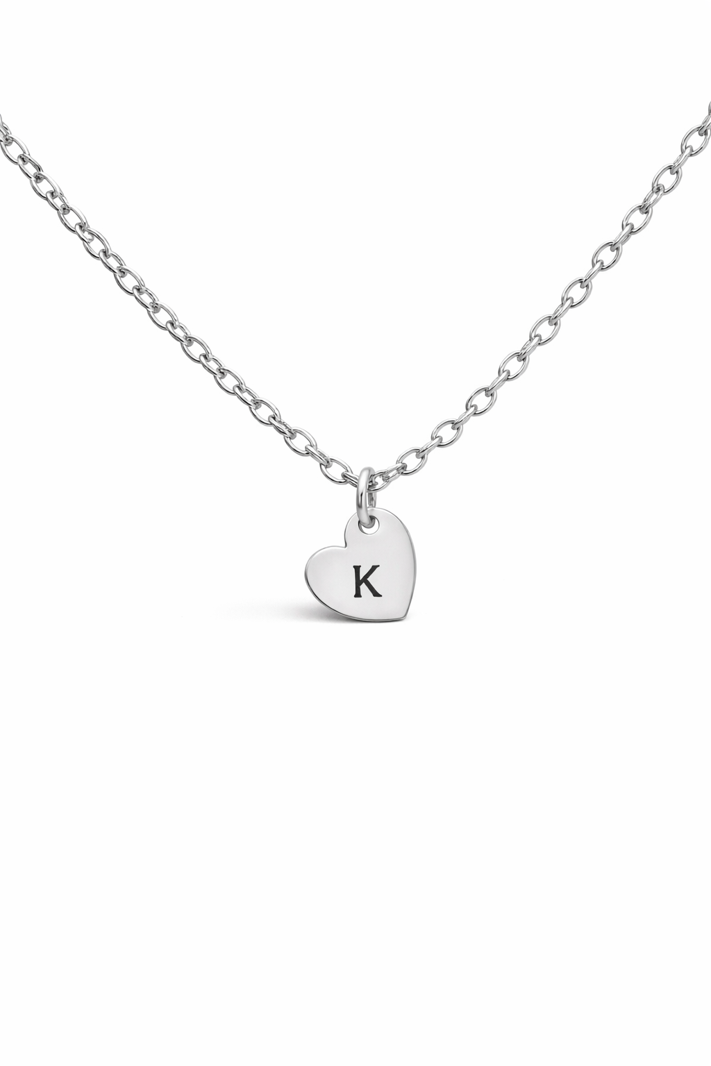 Minimalistička ogrlica sa privjeskom u obliku srca, izrađena od hirurškog nehrđajućeg čelika (medical grade). Moguća je gravura inicijala.